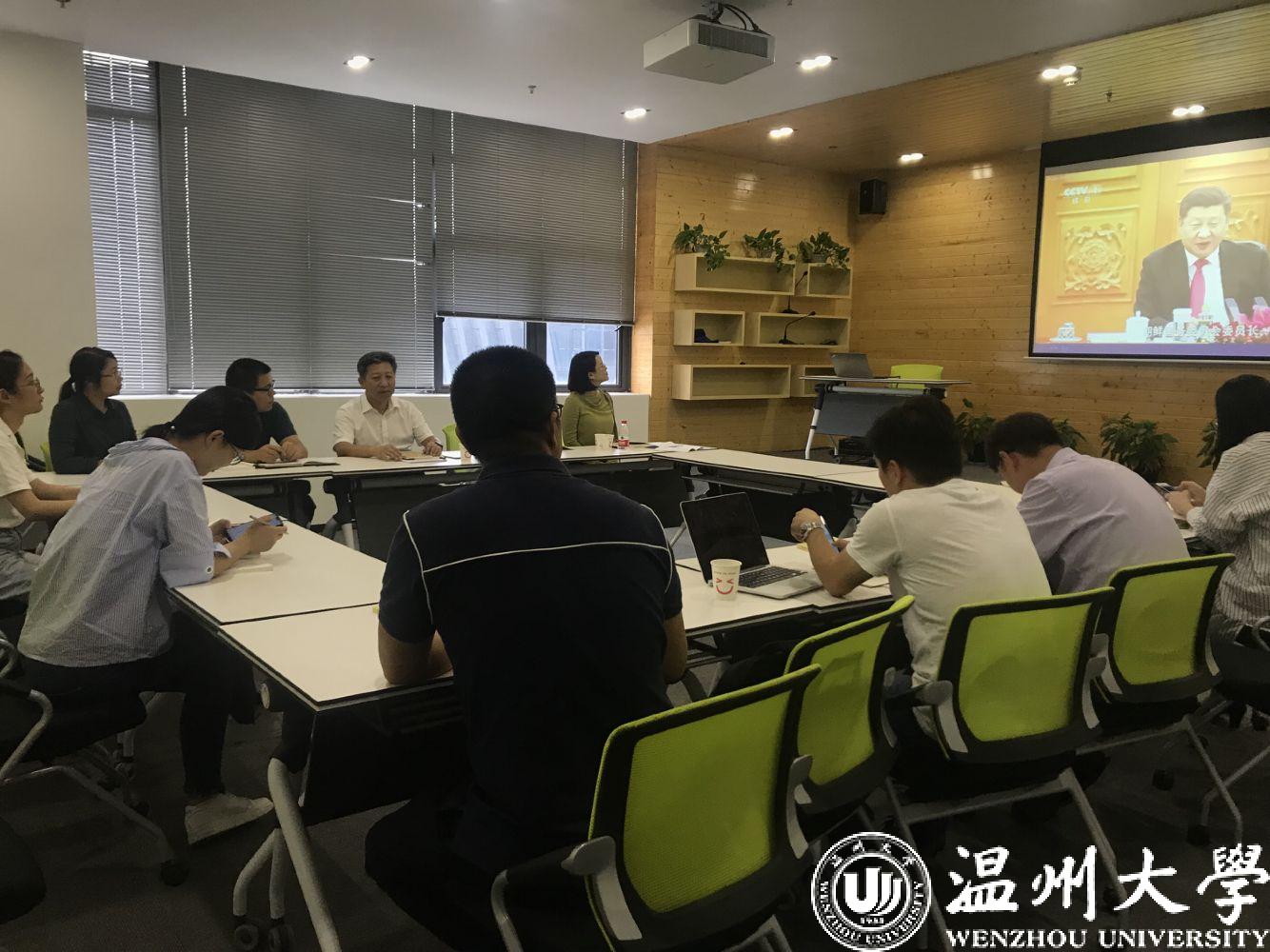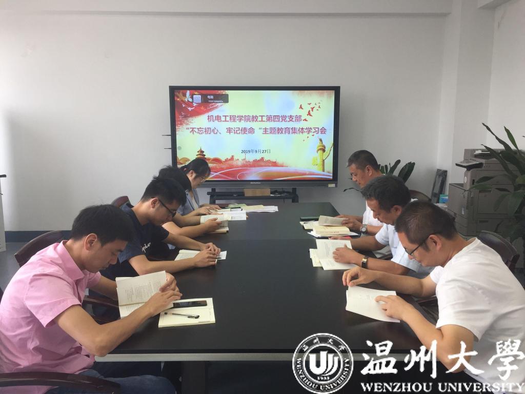 9月27日,学院教工第五党支部(激光研究院党支部)召开“不忘初心、牢记使命”主题教育工作会议,学习了《习近平新时代中国特色社会主义思想学习纲要》,并观看纪录片《我们走在大路上》。通过学习,党员们真切感悟到幸福生活来之不易,为新中国取得的成绩喝彩。党支部书记马光教授总结此次学习会并布置了下一阶段支部主题教育活动的任务和安排。他指出,要不忘初心、牢记使命,要时刻为人民服务,要加大科技成果转化的力度和速度,更好地服务于温州地区经济建设。