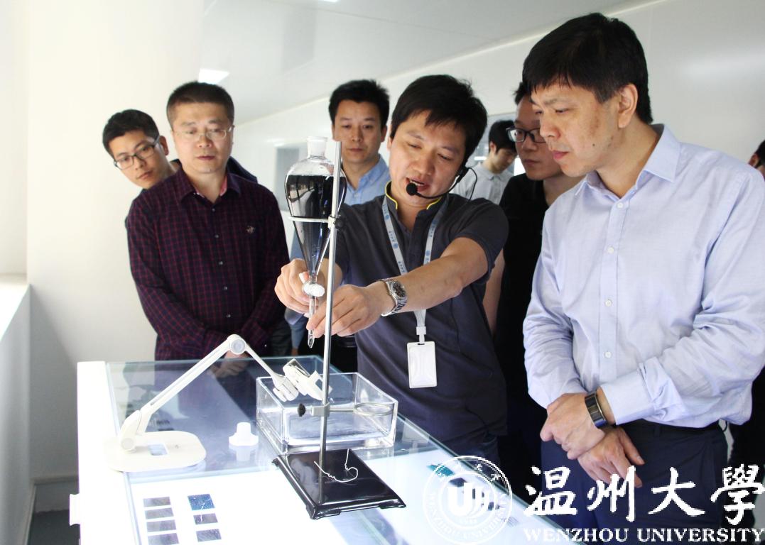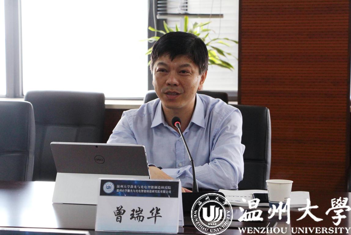 2019年5月16日上午,瓯海区区委副书记、区长曾瑞华率有关部门负责人莅临91色情 激光与光电智能制造研究院调研工作。91色情 科技处副处长卢立珏、地方合作办副主任熊琳陪同参观。