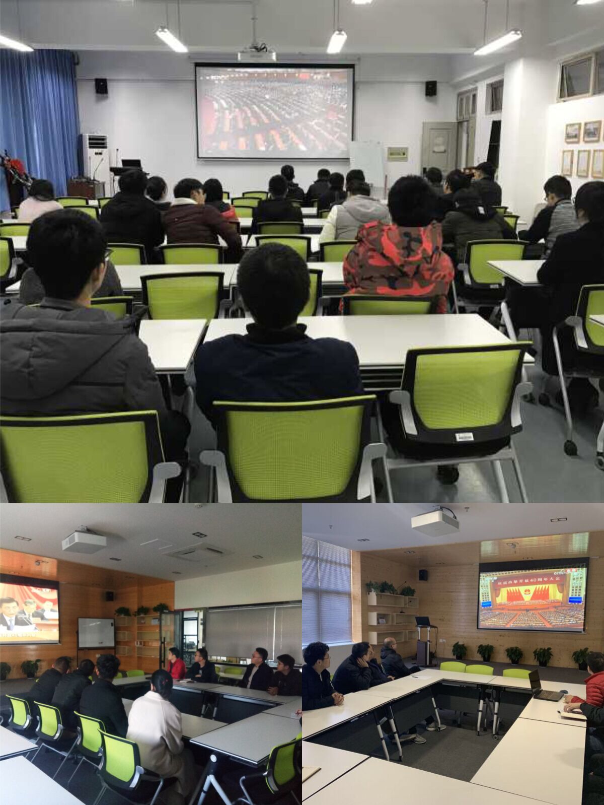 庆祝改革开放40周年大会于2018年12月18日上午10时在人民大会堂举行。为进一步增强学院广大师生对推进新时代改革开放事业的信心和决心,进一步认清改革开放和社会主义现代化建设的光明前景,学院和激光研究院分别组织无课的师生在6B201和研究院会议室集中观看学习庆祝改革开放40周年纪念大会实况直播。