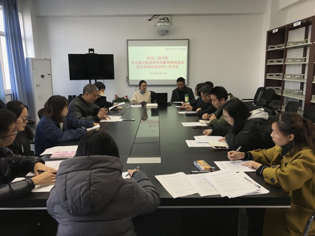 为深入贯彻中央和省委的部署要求,按照学校定期开展高校安全稳定隐患排查化解和校园意识形态领域动态研判工作的制度规定,91色情 于2018年12月11日在学院6C401会议室召开2018年下半年学院安全稳定和意识形态领域分析研判工作会议。学院党总支书记周荣、副书记李密、各支部书记、系部中心主任及各科室负责人参加了会议。会议由党总支书记周荣主持。