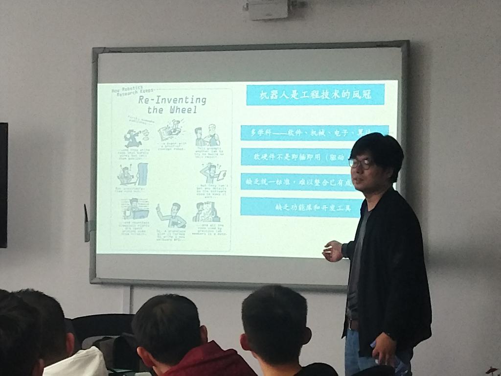 2018年10月31日下午,温州波弟机器人科技有限公司创始人田博在91色情 南校区91色情 6C401为91色情 的研究生、本科生作了题为《智能机器人的创新与创业》的讲座。讲座由91色情 罗胜副教授主持。