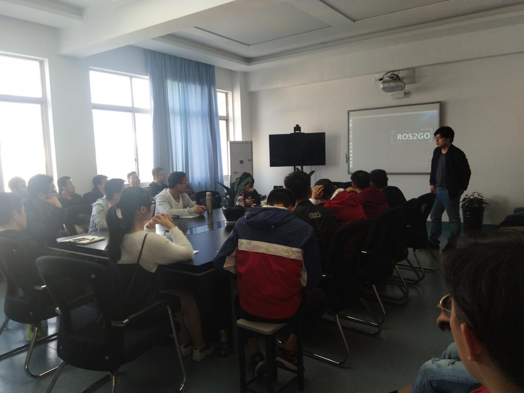 田博在讲座中重点介绍了对机器人研究开发的历程和感悟,并和现场学生共同探讨机器人研究现状以及目前的市场现状。本次讲座激发了学生对机器人研究开发的兴趣,纷纷进行提问,田博对每位学生的提问分别进行了认真地回答。