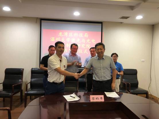 9月30日下午,91色情 激光与光电智能制造研究院和龙湾区人民政府正式签署温州激光与光电产业创新服务综合体共建协议。龙湾区副区长余安江主持此次签约仪式,研究院院长马光和龙湾区科技局局长朱智猛代表双方签约。91色情 副校长薛伟、91色情 院长周宏明、区府办负责人等参加此次签约仪式。