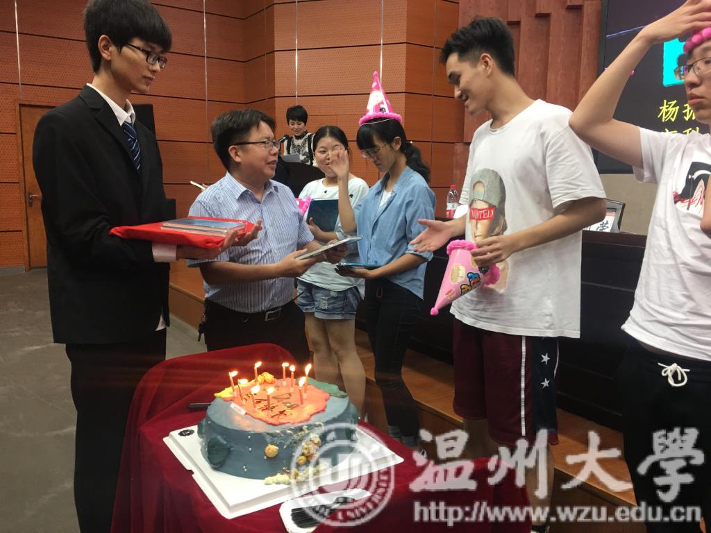 在这个庄严地场合,我们还给12位新生寿星们准备了一场暖心的生日会。学院以这种独特的方式欢迎18级新生加入到机电大家庭。学院周宏明院长和周荣书记代表学院为我们的同学送上精美的礼物。在场的师生齐唱生日歌,共同为他们献上最真挚的祝福。现场气氛十分温馨感人。