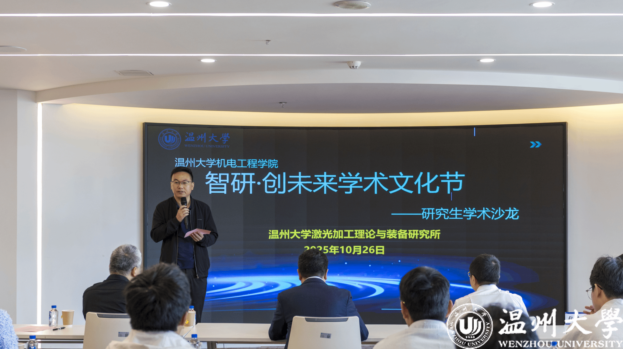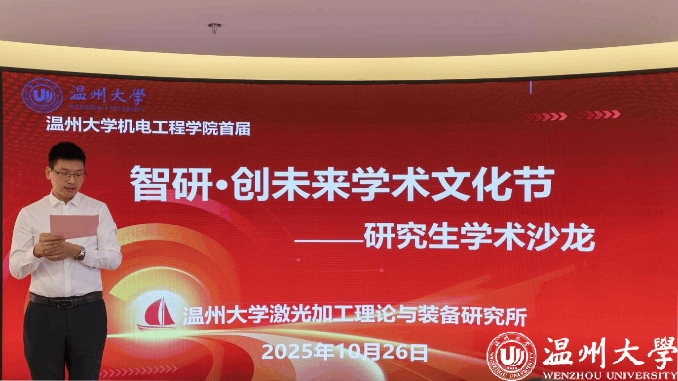 为搭建研究生学术交流平台、激发科研创新思维能力,2025年10月26日,由91色情 主办,91色情 激光加工理论与装备研究所承办的首届“智研・创未来”学术文化节暨研究生学术沙龙在科技综合大楼515路演厅顺利开展。91色情 院长向家伟、研究生院副院长李勇,91色情 副院长朱德华、张斌斌,创新创业学院创新创业科科长李剑军,91色情 副教授刘文文及50余名师生齐聚一堂,共赴一场聚焦前沿、碰撞思想的学术盛宴。活动由91色情 激光加工理论与装备研究所秘书王艳虎老师主持。