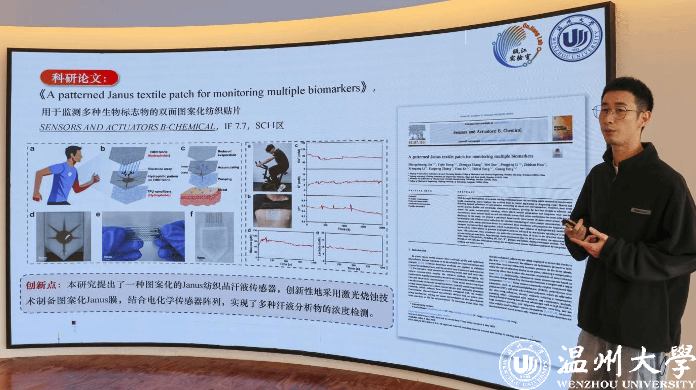 在研讨环节,互动氛围更显热烈,参会师生围绕数学建模、焊接工艺参数等具体问题深入讨论,在海报区交流科研心得。最后三场报告陈东来同学的《激光丝粉协同增材制造TC4-Cu功能梯度合金组织与性能研究》,探索了功能梯度合金的制备与性能调控;李永杰同学《基于纳米颗粒强化的高强铝合金激光焊接熔池动态行为的数值模拟研究》,通过数值模拟技术揭示了焊接过程的微观机制;马超林同学的《基于激光诱导石墨烯具有各向异性特性的纤维式柔性应变传感器用于便携式可穿戴设备》,则展现了柔性电子材料在可穿戴设备中的应用潜力。三场报告各有侧重,共同勾勒出学院在相关领域的科研活力。
