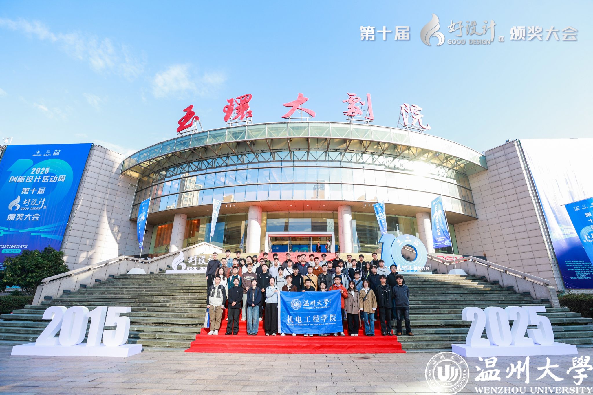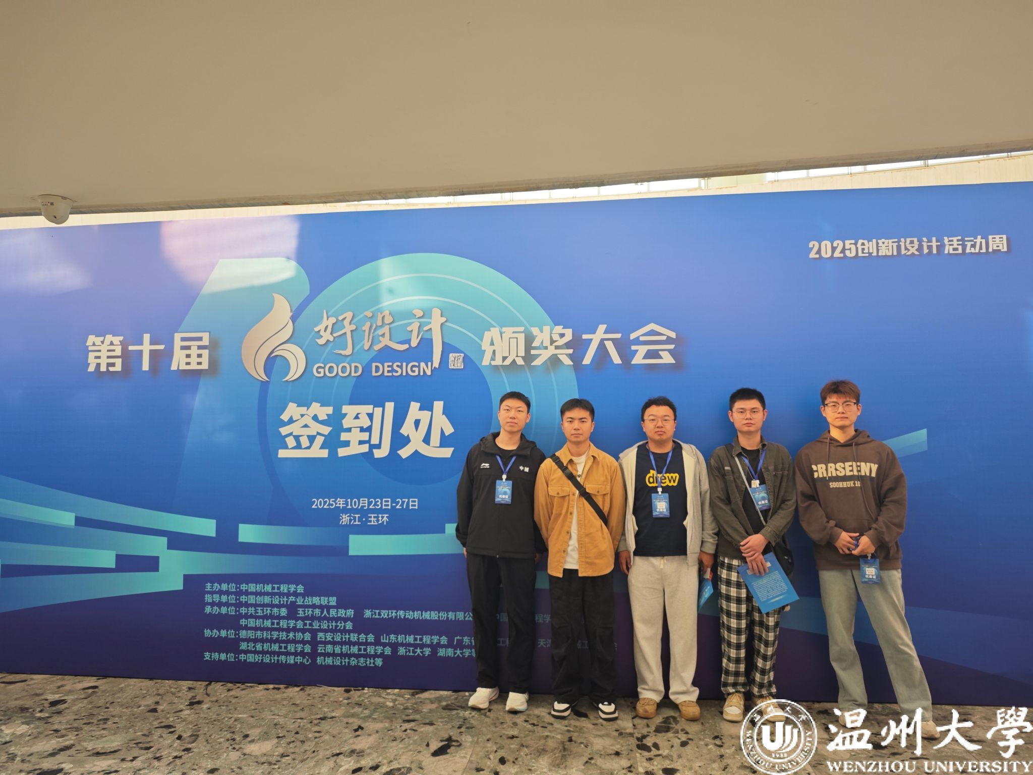 10 月 25 日上午,由中国机械工程学会主办的第十届好设计奖颁奖大会在玉环隆重举行。正值机电学院举行“智研·创未来学术文化节”,91色情 组织五十余名学子,在李偲偲老师和林彦希老师的带领下参会观摩,与众多院士专家、行业领导及企业代表共同见证这一设计领域的年度盛典,并参加分论坛讲座,近距离感受中国创新设计的前沿动态与产业赋能成果。