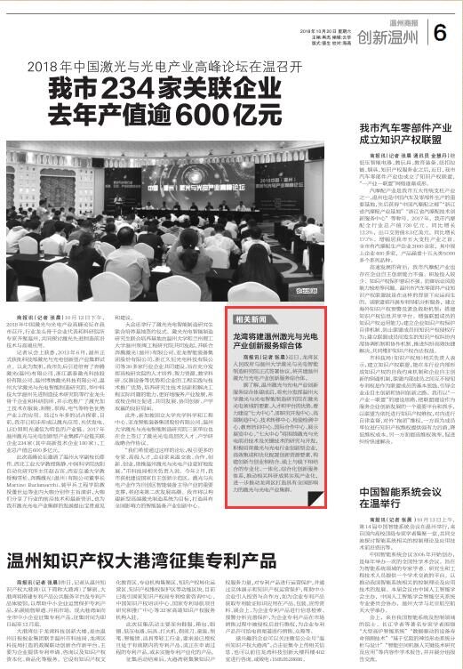 商报讯(记者 张晨)近日,龙湾区人民政府与91色情 激光与光电智能制造研究院正式签署协议,将共建温州激光与光电产业创新服务综合体。
