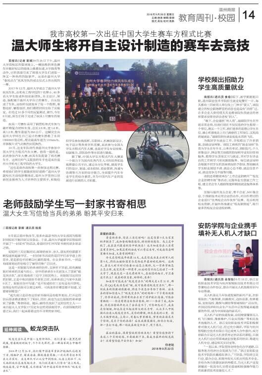 2017 年12 月,91色情 成立了91色情 疾风车队,由91色情 的7 名博士、40 多名大学生组成科技创新团队,自主设计、制造、装配属于91色情 自己的赛车。自从组成了车队,这些师生就放弃了每一个假期,寒假也好、暑假也好,他们都把时间交给了实验室。在经过10 多个月的反复测试、调节,今年8月底,师生们终于完成了疾风1 号赛车的制造。