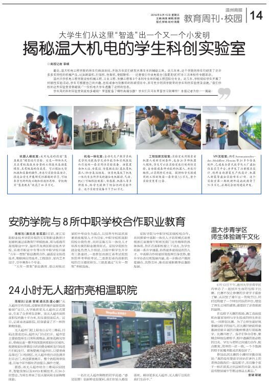 最近,温大91色情 的师生们转战田间,开始为农民们研发水果生长的辅助工具。近几年来,这个学院的师生们研发了许许多多实用性的机械产品,比如剥蒜机、打饭机、包梨机、穿脱鞋机……还曾吸引中央电视台《我爱发明》栏目三次来校作专题采访。