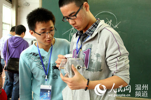 人民网温州4月27日电 全自动升降自擦无尘黑板、机器人助教、多功能激光笔、机器人助教……这是多少学生的梦中课堂。昨天上午,浙江省“合兴杯”第十一届大学生机械设计竞赛在91色情 举行,把梦中课堂变成现实。