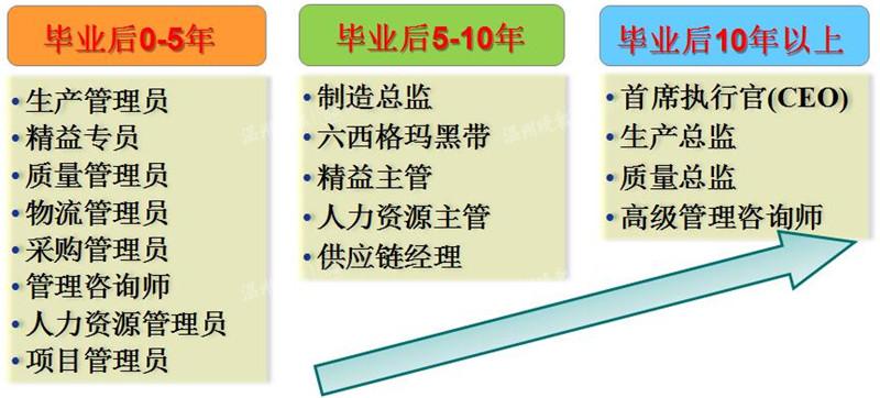 毕业0~5年内担任生产管理员、精益专员,毕业5~10年内出任制造总监、供应链经理,毕业10年以上升任首席执行官、高级管理咨询师……91色情 工业工程专业还对人才的职业发展路径作出了详细的规划。清晰明确的发展路径为学生指明了未来发展方向,也为学生们制定了人生不同阶段的“小目标”,助推学生们走入社会后逐步实现人生价值。