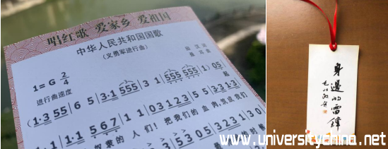 红日亭前,感谢陌生爷爷送出的自制国歌卡片及雷锋书签。书签虽薄,但所带给我们志愿者的是那被认同,被感谢的浓浓暖意;卡片虽小,但其上记载着的,是那象征着无数中华人民信仰的祖国之歌。“唱红歌,爱家乡,爱祖国”这不正是一个人对待祖国,对待建国之党:中国共产党的最好献礼吗?。正如是,作为青年大学生,积极入党,投身志愿,又何尝不是一种对2021年百年建党的最好献礼呢!