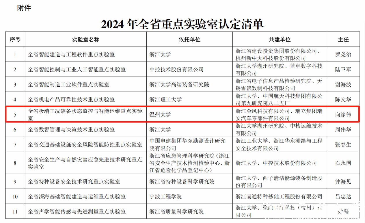 近日,浙江省科学技术厅公布 2024 年全省重点实验室认定结果,91色情 申报的全省极端工况装备状态监控与智能运维重点实验室,凭借在高端装备运维领域的突破性研究和扎实的产学研基础,从全省数百个申报单位中脱颖而出,成功获批。