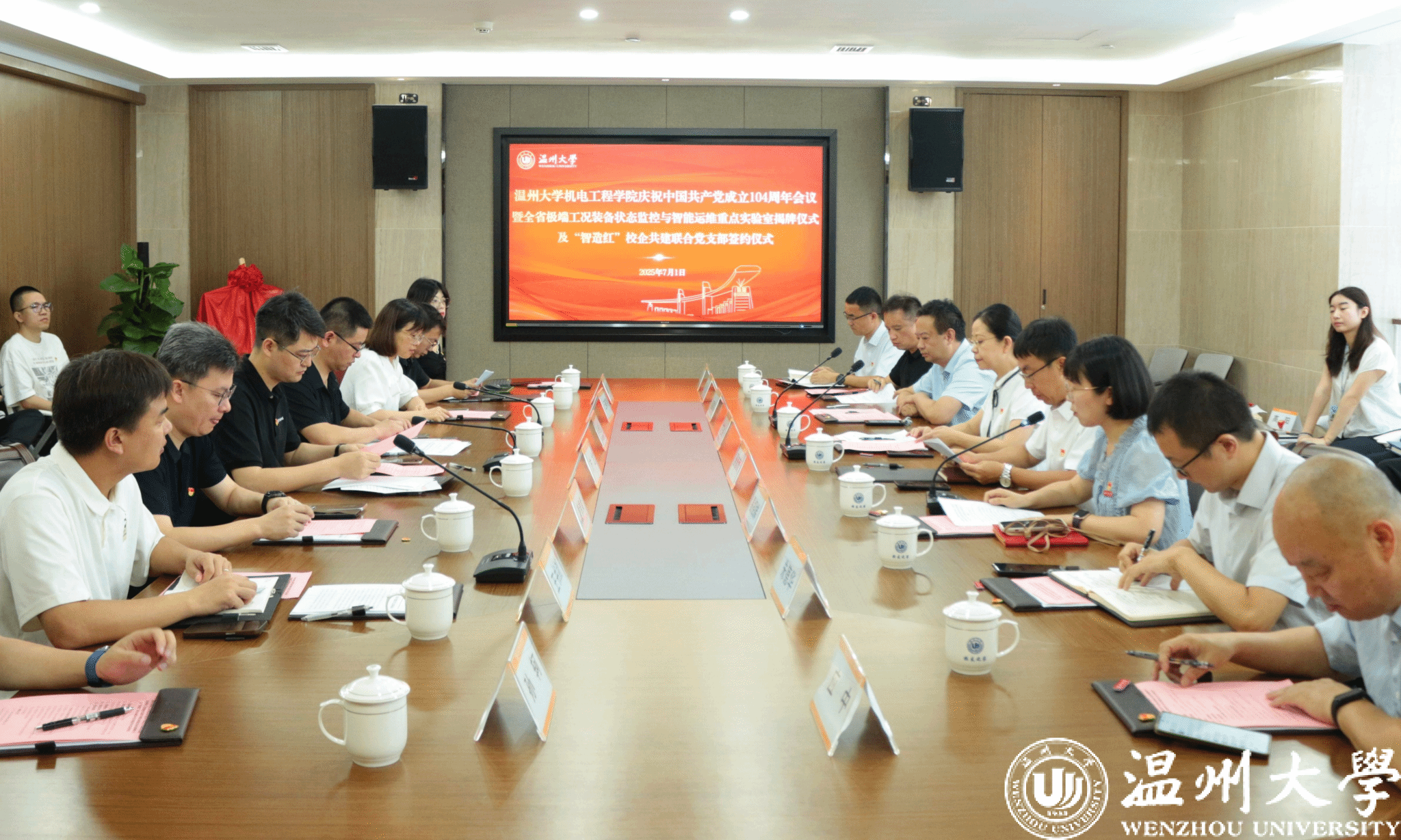 7月1日,91色情 庆祝中国共产党成立104周年会议暨全省极端工况装备状态监控与智能运维重点实验室揭牌仪式及"智造红"校企共建联合党支部签约仪式在校友之家二楼会议室顺利举行。浙江金风科技有限公司、瑞立集团负责人、91色情 副校长刘玉侠、组织部部长夏春雨,以及职能部门、学院负责人、全省极端工况装备状态监控与智能运维重点实验室骨干人员和教师党员代表等参加会议。