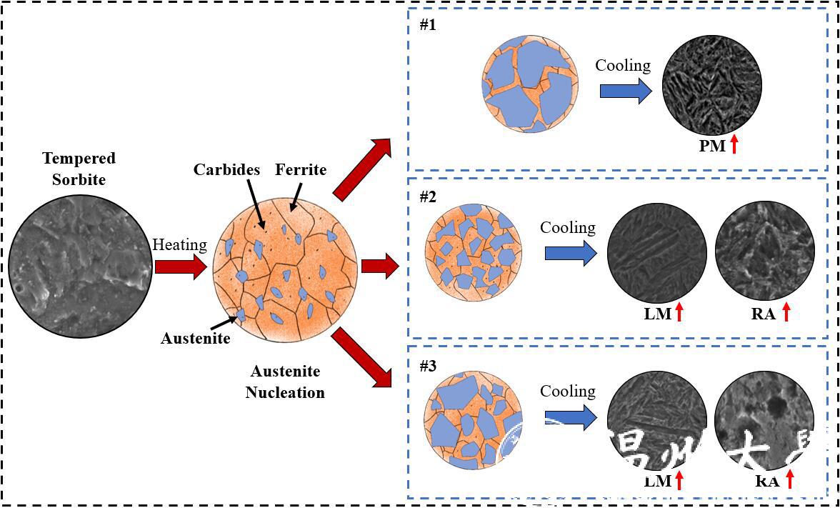 近日,机械工程领域重要国际学术期刊International Journal of Advanced Manufacturing Technology(IF:3.32)在线刊登题为“Effects of laser energy density on carbide dissolution, element distribution and microstructure evolution of AISI P20 steel during laser surface quenching”(DOI:10.21203/rs.3.rs-375133/v1)的最新研究成果,论文第一作者为91色情 车辆工程2016级本科生李卓原同学,通讯作者为张健副教授。该研究主要针对工业模具易失效问题开展的系统性研究,在李卓原同学前期采用激光相变硬化工艺对预硬化AISI P20钢表面进行强化的基础上(DOI:10.1016/j.optlastec.2019.105852),本研究进一步探讨了相变过程中碳化物的熔解/烧蚀、微合金元素的扩散及残余应力分布特征,阐明了强化层关键碳化物熔解/烧蚀机理与组织演化规律,为模具钢的激光表面工程化提供了重要的理论与技术参考。