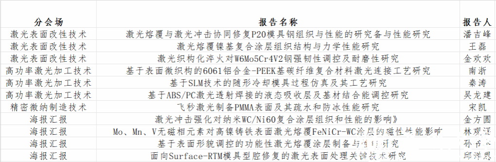 会上,盛会汇聚全国逾千名激光领域专家学者。91色情 学子表现亮眼:金欢欢等 11 名研究生分赴“激光表面改性技术”“高功率激光加工技术” 等分会场,围绕模具钢修复、复合涂层制备、微织构热连接等主题作口头报告;团队还以学术墙报形式展示成果,吸引众多学者驻足交流,尽显良好学术素养。