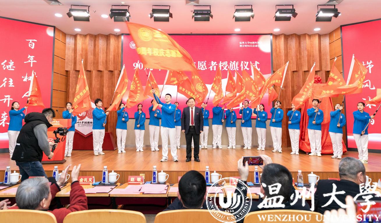 活动现场举行了校庆志愿者授旗仪式,发布校庆志愿者服装,并启动校庆志愿者招募工作。学校将组建1支90周年校庆志愿服务总队、18支志愿服务分队,积极投身庆典大会、文艺晚会等各项校庆活动中。校长赵敏为志愿者代表授旗。