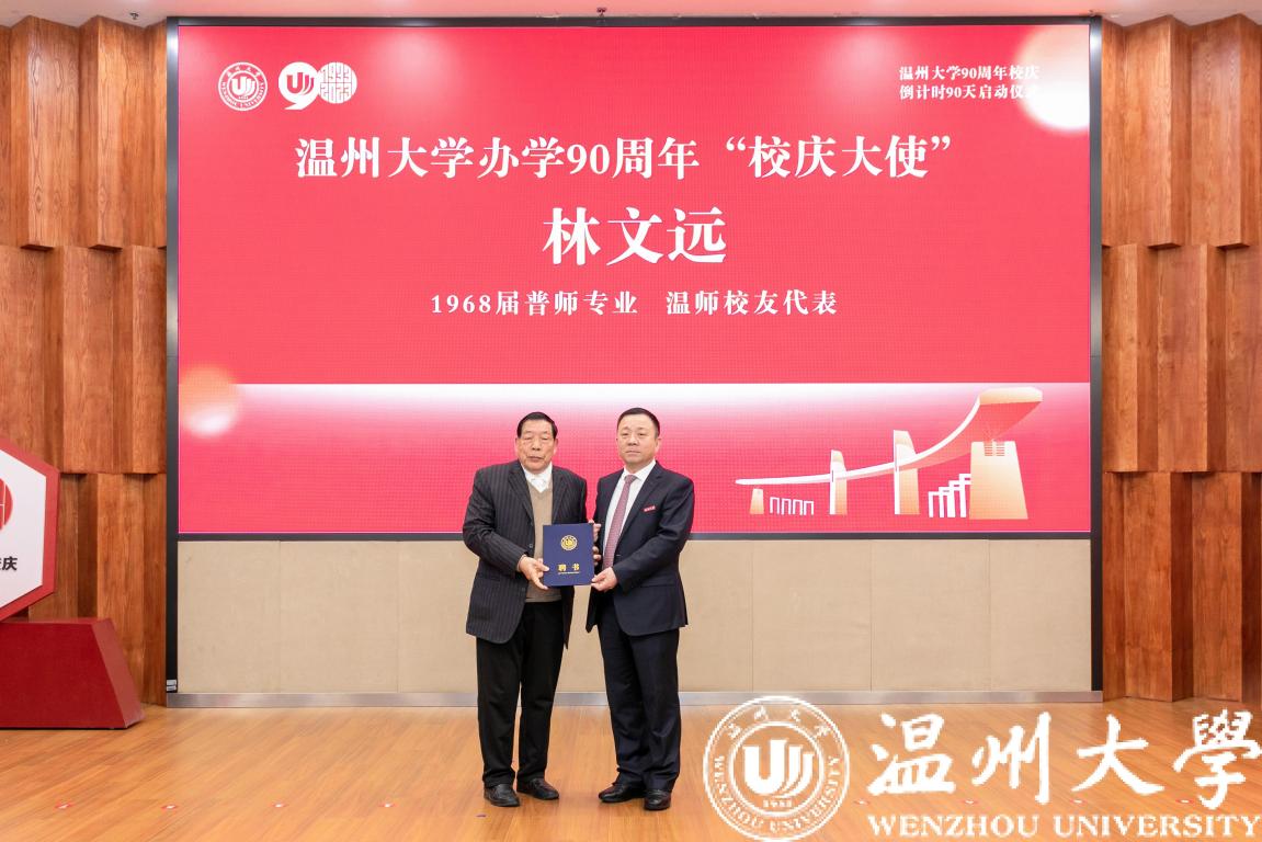 90周年校庆标识、吉祥物正式发布。校庆标识由美术学院郑声老师设计,主体图形以数字“90”“校标”“1933-2023”为设计元素,色调选用红色,突出90周年校庆的喜庆庄重氛围。憨态可掬的吉祥物文文、达达由建工学院校友黄磊设计,取自温大谐音,寓意文化底蕴深厚,气质大度豁达。