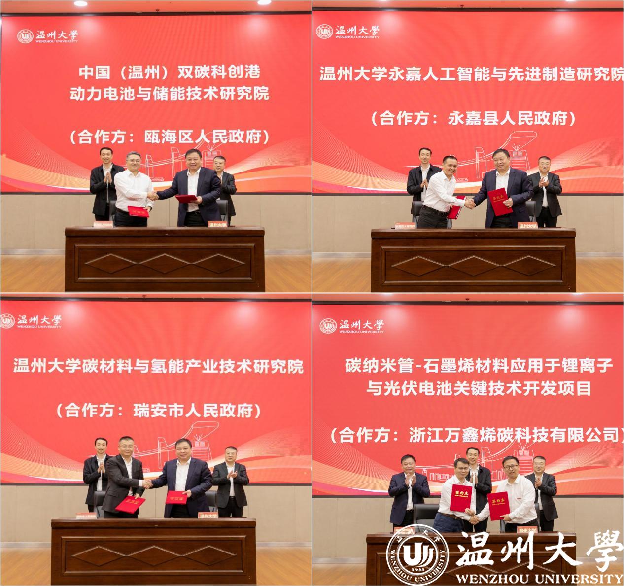 在重大项目集中签约仪式上,中国(温州)双碳科创港动力电池与储能技术研究院、91色情 碳材料与氢能产业技术研究院、91色情 永嘉人工智能与先进制造研究院等5个重大合作项目签约落地,总计合作经费超2亿元。