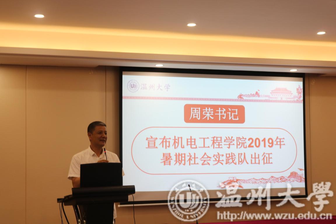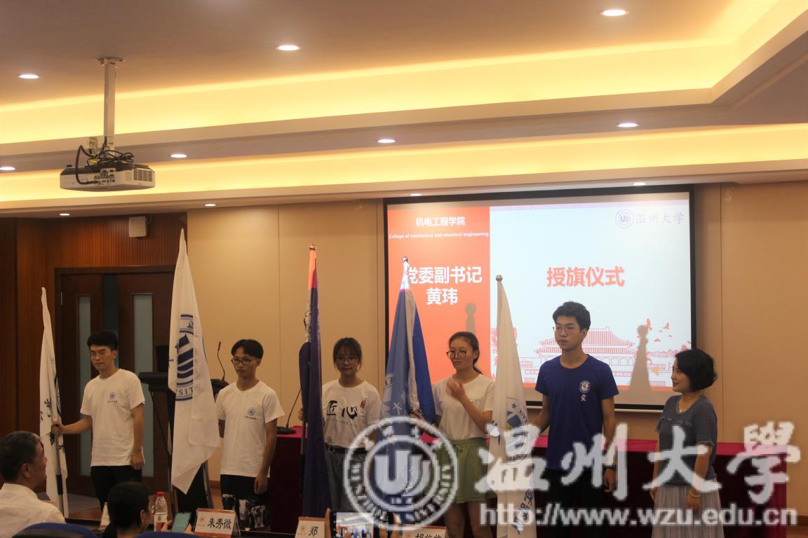 首先,夏之萤实践队、小候鸟实践队、瓯越匠心实践队、汽车世界实践队、阳光慢行实践队分别在队长的介绍下展现各自的风采,让老师们和同学们对实践队有了进一步的了解和认识。接着,91色情 团委书记朱秀微老师对91色情 的实践队已经有了一定的体系表示肯定,与此同时也指出,实践队在较好地传承传统活动项目时,更应该发挥服务社会和创新精神,结合不忘初心跟党走、牢记使命勇担当——“红七月·服务月”活动指导精神,创造出更具特色、服务社会的活动。并且强调队员们在暑期社会实践中要注意安全,在实践中学习,在实践后更要提升总结,获得宝贵的经验。然后,91色情 党委副书记黄玮为各实践队进行授旗。随后,实践队的同学们一起进行了出征宣誓,整齐地举起右手大声宣誓。最后,周荣书记宣布91色情 2019年暑期社会实践活动正式出征。