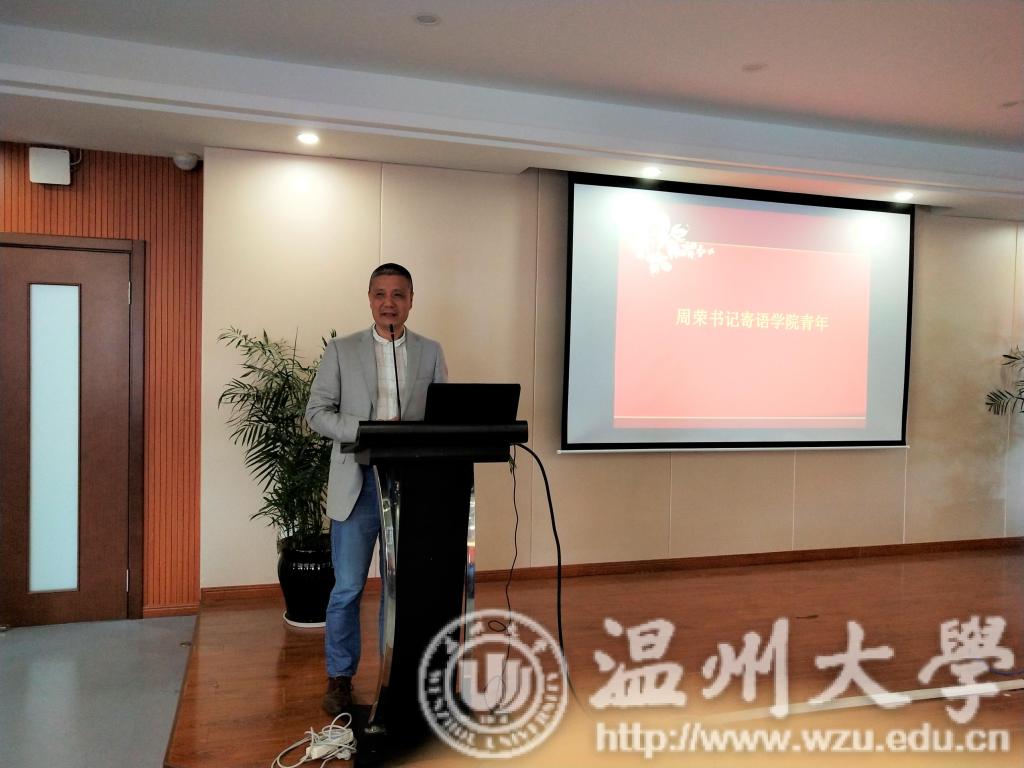 活动开始,全体成员齐唱团歌,在庄严的歌声中,拉开了本次主题活动的序幕。紧接着,91色情 党总支书记周荣给91色情 团学干部上了一堂生动而形象的主题教育课。书记以“说起五四运动我们脑中能想到哪些关键词”这一互动问题,带领91色情 青年了解了五四运动的历史意义和时代价值,告诫我们青年要发扬伟大的五四精神,更好得报效祖国。周荣书记告诫广大团员干部要坚持党的领导,听党话、跟党走,发扬爱国、进步、民主、科学的五四精神,在祖国“两个一百年”号角吹响之际,担起历史使命和时代责任,汇聚新时代民族复兴青年力量,在实现中国梦的伟大事业中铸就人生梦想。书记的循循善诱、谆谆教诲,无不触动着在场每一位青年赤诚的爱国之心.随后后。周荣书记还关心同学们的学习、生活等问题,同学们纷纷提出自己的困惑,书记一一给予解答。