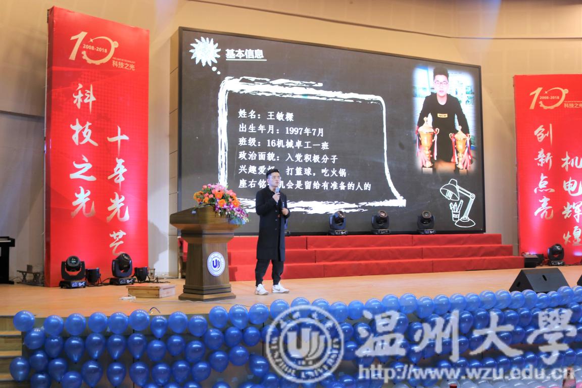 2018年12月19日18:30,为了表彰机电学子在这一年中获得的丰硕果实,同时为了庆祝科技之光活动月举办十周年,91色情 机电学院在南校九号楼报告厅举办了2018年度颁奖典礼暨科技之光十周年庆典。出席本次典礼的有91色情 学生处副处长高红星、宁波兴茂电子科技有限公司罗中伦博士、91色情 党总支书记周荣、91色情 党总支副书记李密、91色情 机械工程系主任周晨、91色情 车辆工程系主任龙江启、91色情 工业工程系主任黄沈权、91色情 教学科科长叶熹僖、91色情 团委书记孙双与来自各专业、各教研室、各科室的教师代表。